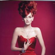 American actress and fashion model Lydia Hearst is dressed in fiery red for Swarovski’s ad campaign “Four Passions, One Heart” supporting The Heart Truth.