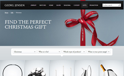 Consumers are prompted to “Find the perfect Christmas Gift” by selecting the occasion, who it is for, the type of product and price range.