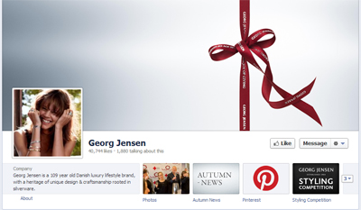 Other charitable events are being promoted on Georg Jensen’s Facebook page as well. For example, an album is dedicated to the Joy of Giving Red Cross event at Georg Jensen’s Copenhagen store.