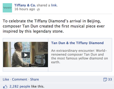 "This promotion demonstrates Tiffany’s great interest in the Chinese market and its recognition of the nationalistic interests and pride of the Chinese people."