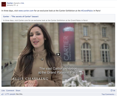 By not posting the magazine’s link directly to its Facebook, Cartier was able to bring its target consumer to its Web site where they are more likely to explore current collections as well as materials on the exhibit.