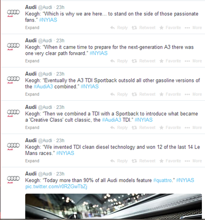 Audi essentially recorded its press conference via Twitter, during which the brand announced the return of the A3 TDI Sportback to the U.S. market.