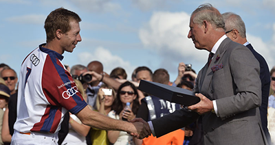 Prince Charles of Wales with a member of the Audi polo club