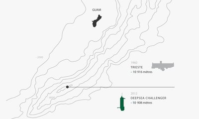 On March 26, 2012, Mr. Cameron plunged into the trench piloting the Deepsea Challenger alone. He was the first man since the 1960 Trieste dive to undertake the trench.