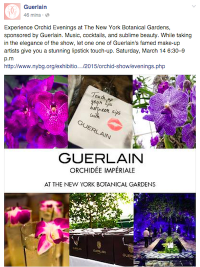 Held every Saturday between March 7 and April 18, Orchid Evenings is publicized as a “romantic date destination,” with dining, live entertainment and cocktails. This event will help Guerlain reach floral lovers who would likely be interested in its Orchidée Impériale.