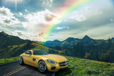 Mercedes posted an image of a gold car at the end of a rainbow with the caption "We make our own luck. And as it so happens, we make our own pot of gold, too. Happy St. Patrick's Day from Mercedes-Benz USA."