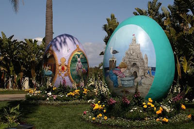At the Ritz-Carlton Laguna Niguel in California an Easter egg display is presented on the property with hand-painted eggs that portray different scenes.