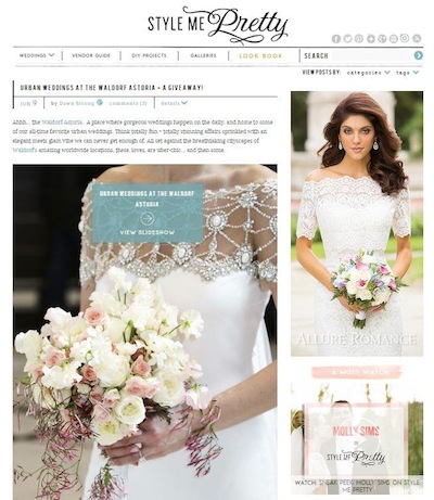 Style Me Pretty’s post also gives tips about the service Waldorf Astoria provides as couples plan their wedding day.