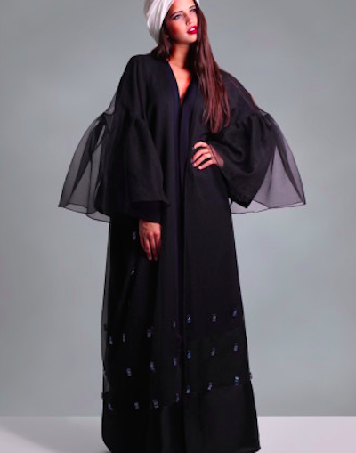 "In addition both brands aim for sophistication and contemporary structure in a way that still seeks to capture a sense of place. Hessa Al Falasi takes the traditional abaya and places a modern twist on it. Her designs are contemporary yet tasteful and she uses textures and colors that push the boundaries of the classic style of the attire."