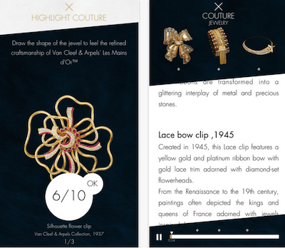 Van Cleef & Arpels has also created an accompanying app to enhance the visitor experience. From the touchpoint, consumers can listen to an audioguide to hear the stories of the jewelry pieces and the gemstones.