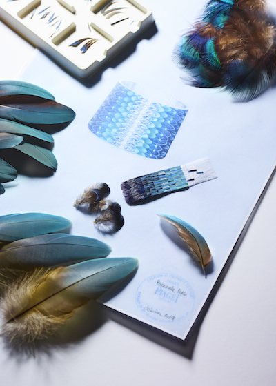 The 150 party-ready pieces include techniques such as engraved palm trees or diamonds and emeralds set in botanical patterns. A mosaic in shades of blue is meant to look like the bottom of a pool, while pink stones mimic the look of a flamingo (see story).