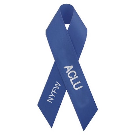 Together, the CFDA and the ACLU designed a pin featuring “ACLU” and “NYFW” inscribed on a blue ribbon.