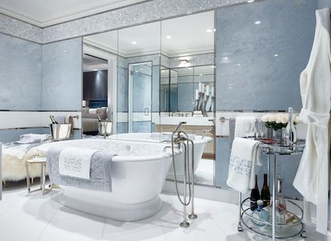 Iris Designs teamed with sponsors Christofle and Frette for a master bathroom. Other sponsors include Miele, Hästens and Lladró, among others.