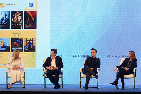 Panel featuring Secoo's Federica Marchionni, Scott Malkin of Value Retail and Adrian Cheng of K11 with moderator Motoko Rich. Image credit: C.K. Man for The New York Times